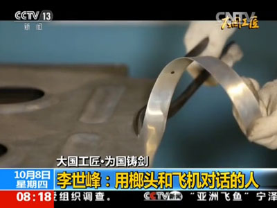 一架战机的机身,有40%到70%的零件出自他手,一把榔头,为新型国产战机打造身躯。在九三阅兵的空中方队中,五型参阅飞机上安装了中航工业西飞的钣金工李世峰和他的团队亲手制造的机身零件。今天的《大国工匠》,我们为您介绍李世峰,这位用榔头和飞机对话的人。