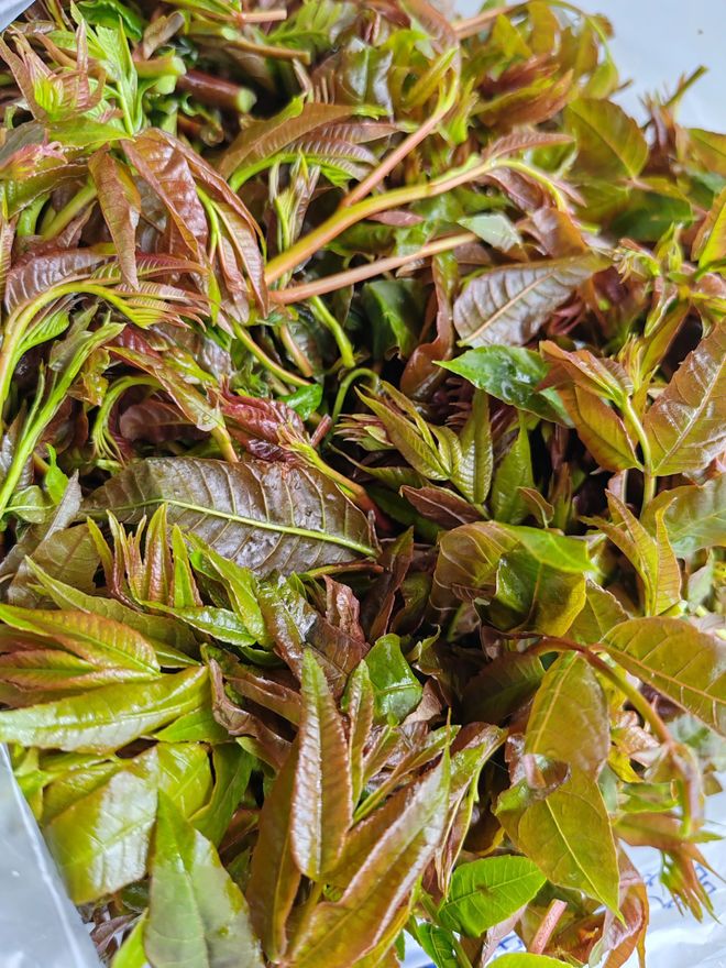 五、市场选购与储存建议- **购买渠道**:优先选择超市、正规菜市场,避免路边采摘。香椿芽价格较高(春季约20-50元/斤),低价“香椿”需警惕。- **储存方法**:香椿芽洗净焯水后冷冻,可保存半年;新鲜香椿建议2-3天内食用完毕。- **特殊人群**:过敏体质者首次少量尝试;肾功能不佳者避免过量(香椿含较多钾)。