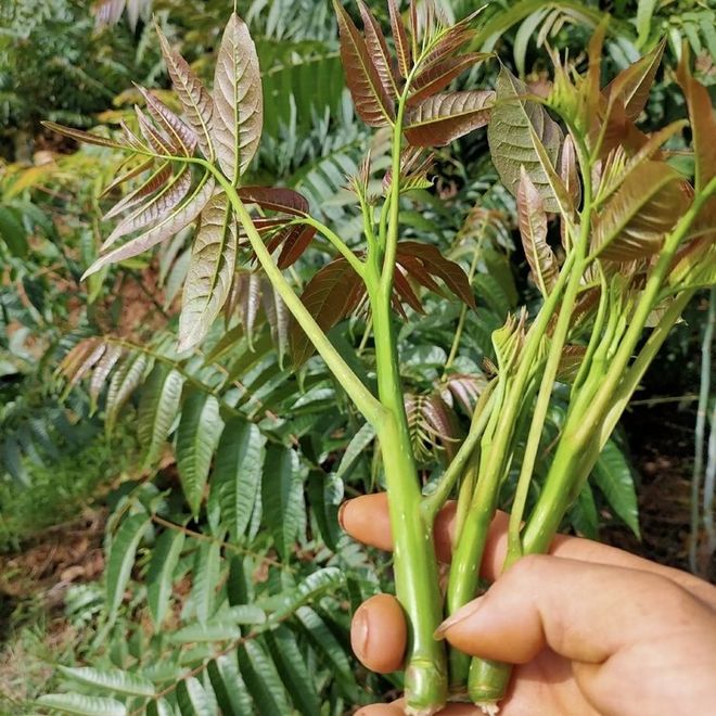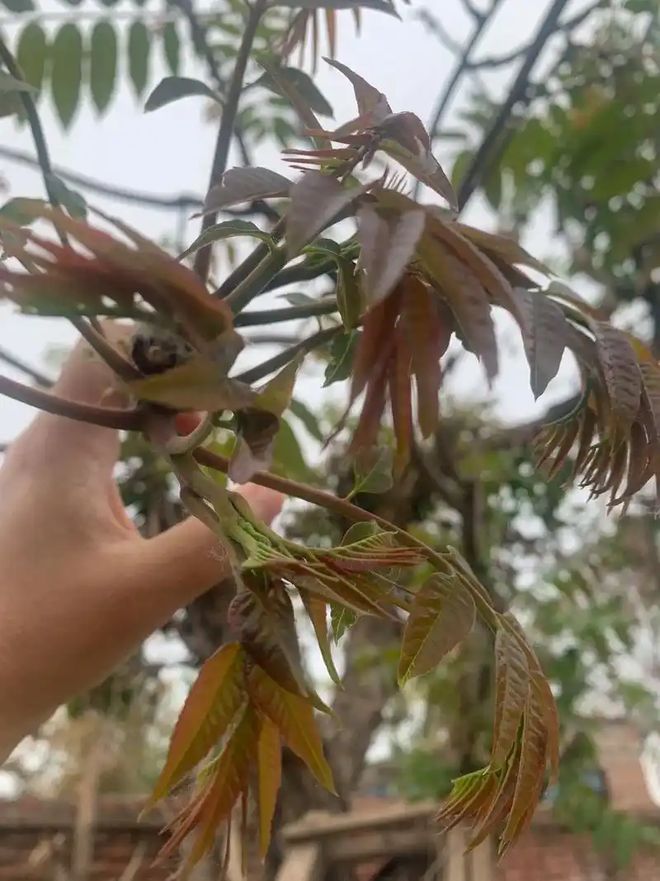 四、辨识技巧:五步法避免混淆1. **闻气味**:香椿芽清香扑鼻,臭椿芽异味刺鼻。2. **数叶片**:香椿为偶数羽状复叶(如6-10对),臭椿为奇数(如13-25片)。3. **看叶齿**:香椿叶缘锯齿细密均匀;臭椿基部有腺齿。4. **观颜色**:香椿嫩芽多呈紫红或深绿,臭椿偏黄绿。5. **尝味道**(谨慎操作):香椿焯水后鲜甜,臭椿苦涩麻舌。